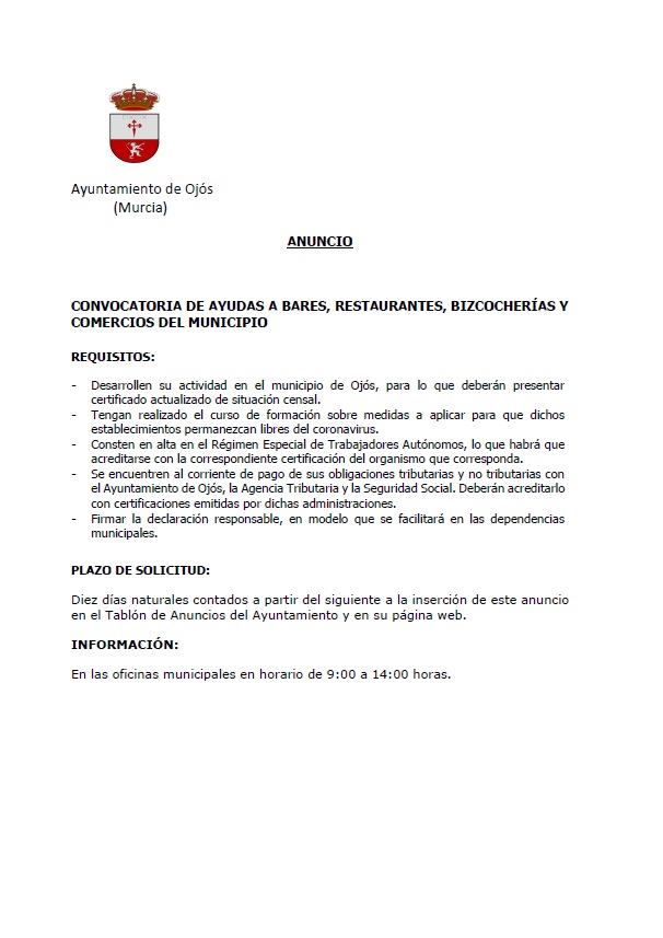 ANUNCIO CONVOCATORIA DE AYUDAS Detalles Categoría de nivel principal o raíz: 8.-Información y Atención al Ciudadano Categoría: 8.3.-Participación Ciudadana Publicado: Lunes, 02 Noviembre 2020 17:42 Visto: 10313 Anterior Siguiente