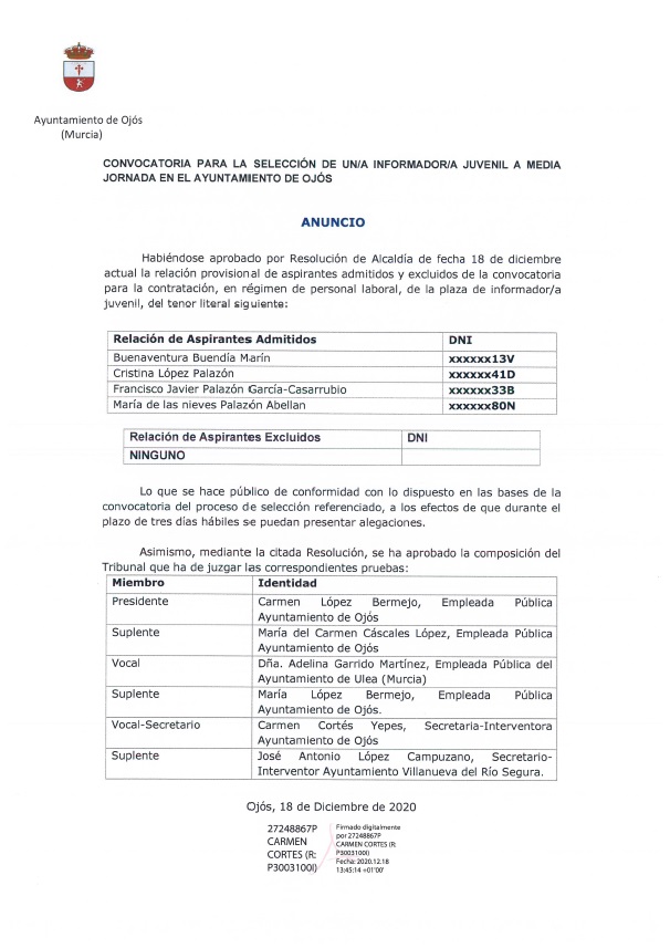 ANUNCIO SELECCIÓN INFORMADOR JUVENIL A MEDIA JORNADA